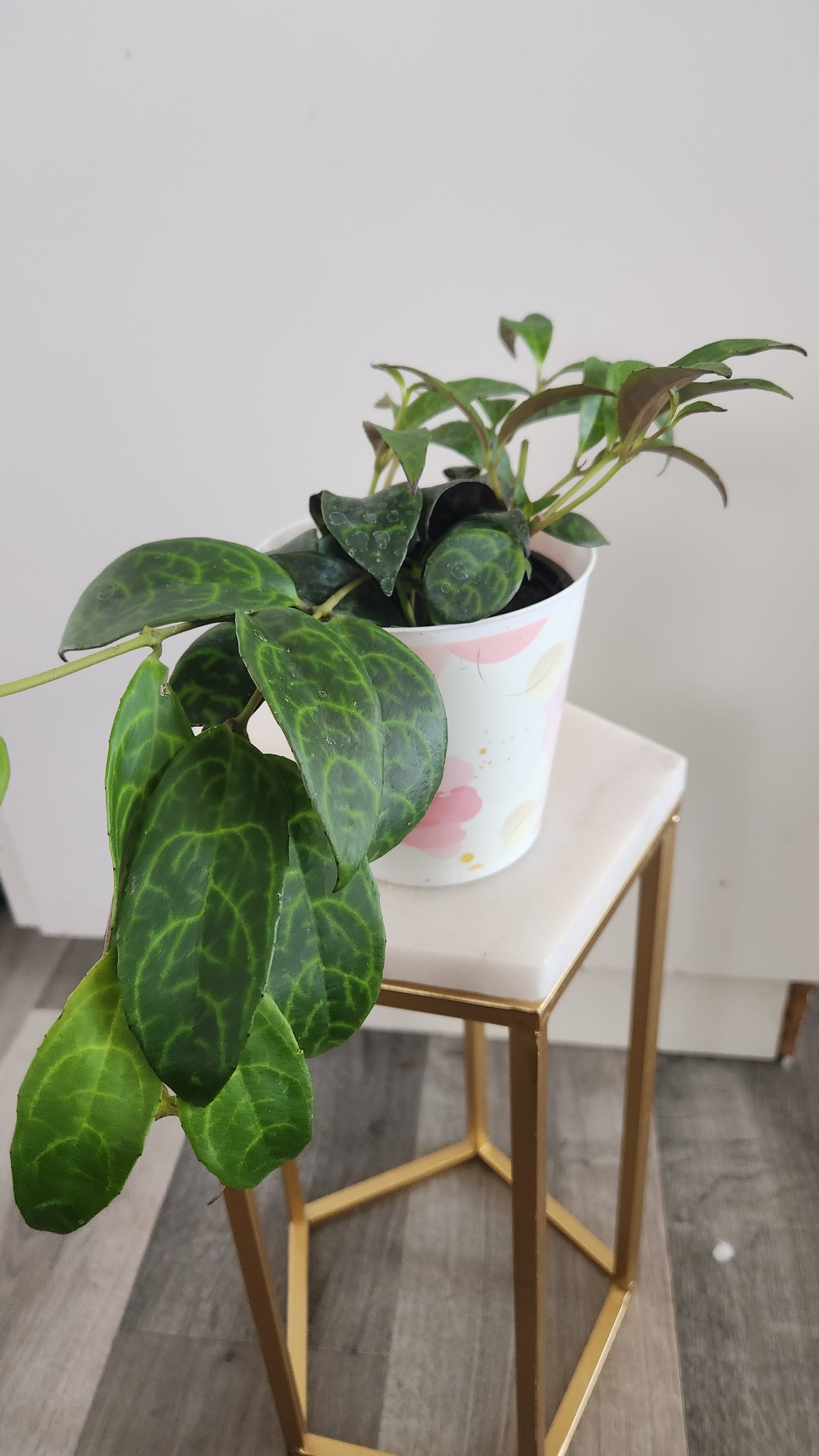 Lipstick Black Pagoda is a striking, trailing plant known for its dark, almost black-green foliage and vibrant, tubular red flowers that resemble lipstick tubes. It thrives in bright, indirect light and requires moderate humidity, making it a perfect choice for a dramatic and colorful addition to your indoor garden.